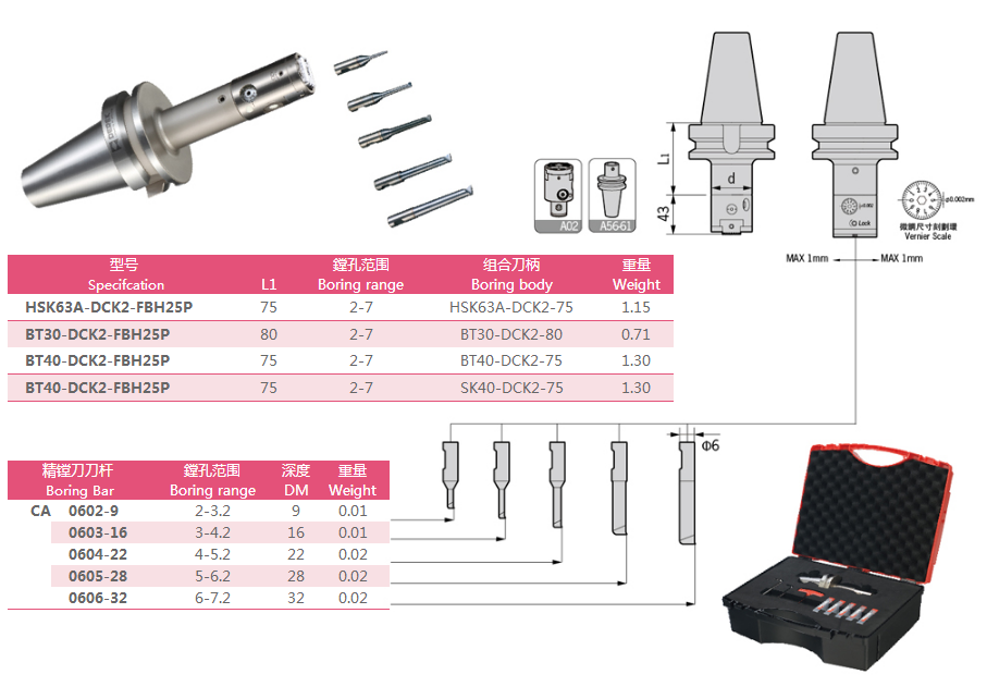 · 粗鏜刀 · 精鏜刀 · 精鏜套裝 · 鏜頭刀柄 |