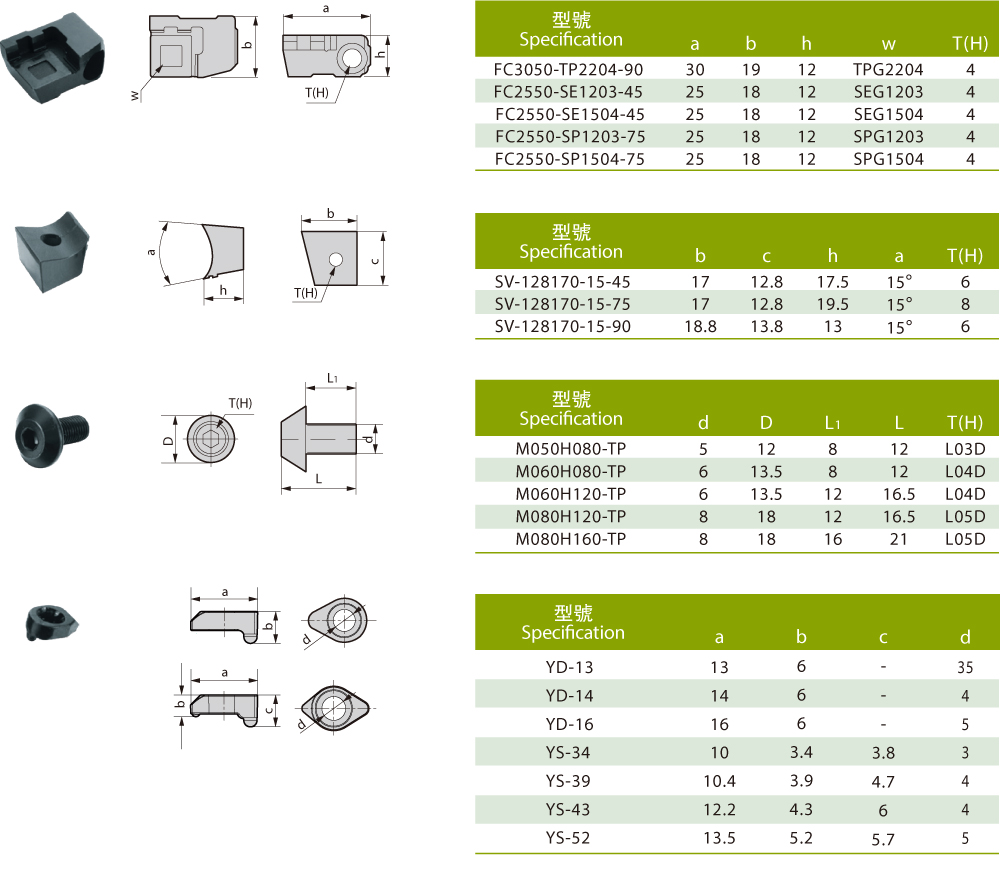 · 鏜刀片 · 銑刀片 · 普通車刀片 · 切槽車刀片 · 螺紋車刀片 |