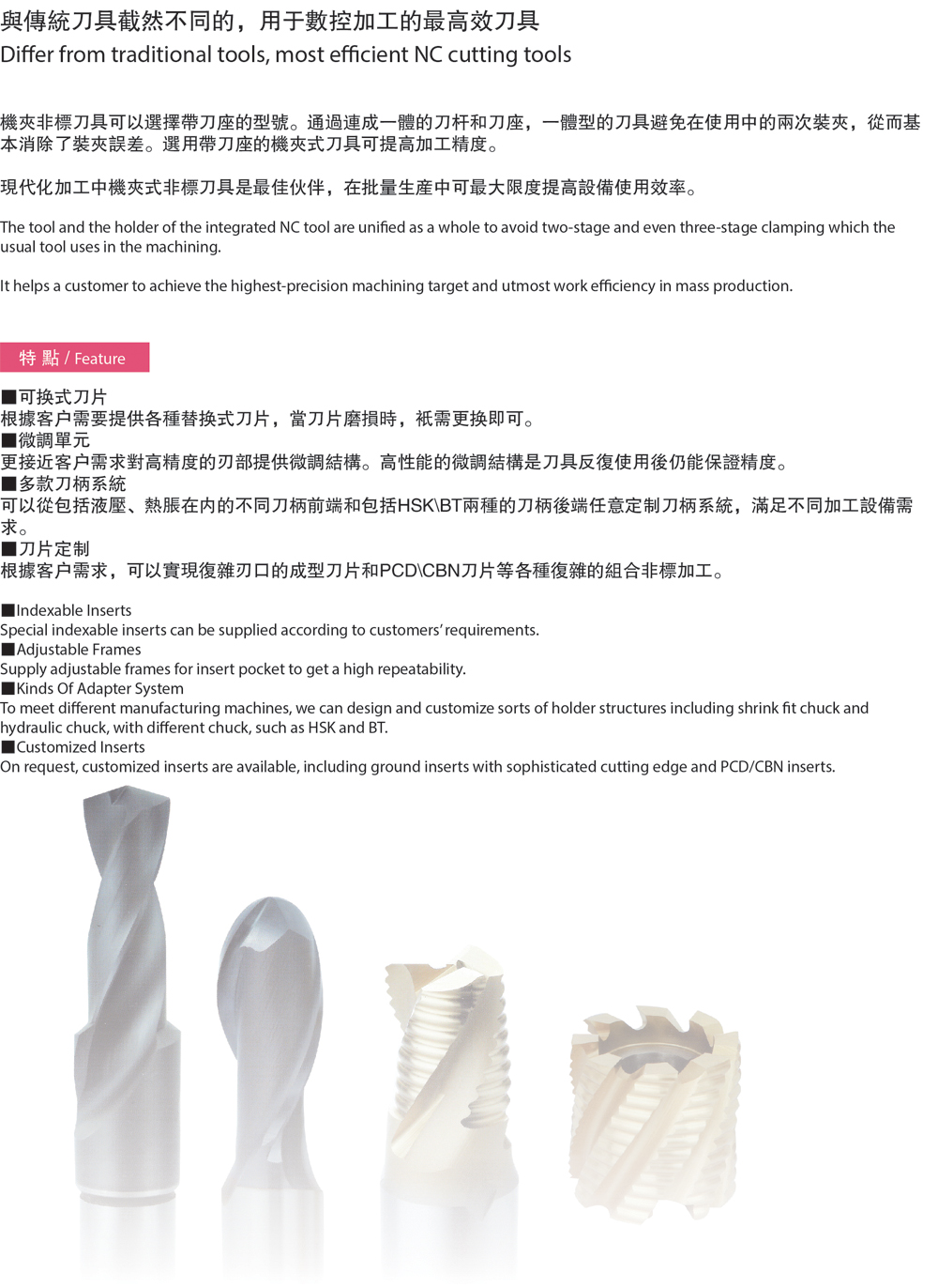 · 機夾式非標 · 整體非標定制 · PCD非標定制 · 項目方案打包 |