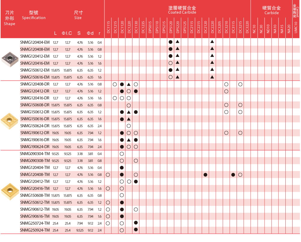 車削刀片牌號一覽表