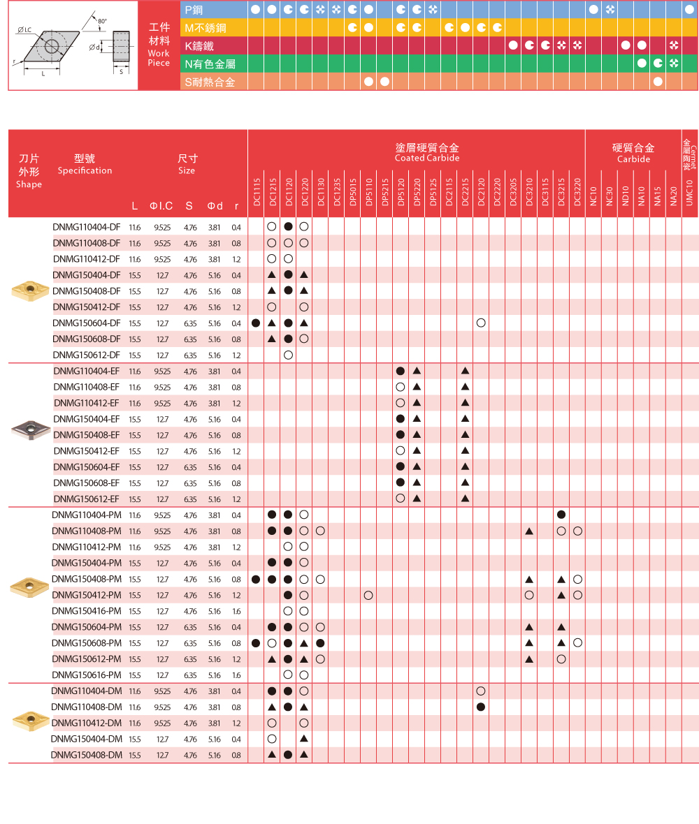 | Insert Grades - Turning 車(chē)削刀片牌號(hào)一覽表 |