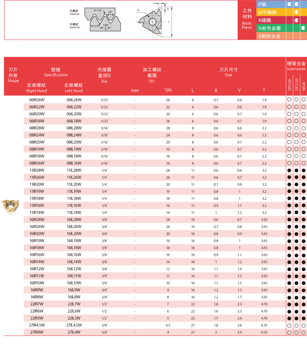 · 鏜刀片 · 銑刀片 · 普通車刀片 · 切槽車刀片 · 螺紋車刀片 |