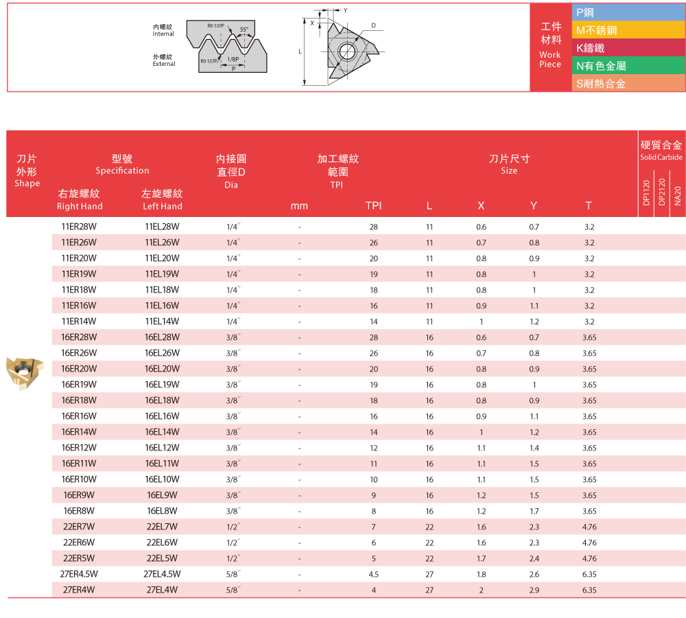| W-55° Whitworth Full Profile W-55°英國惠氏螺紋刀片 |