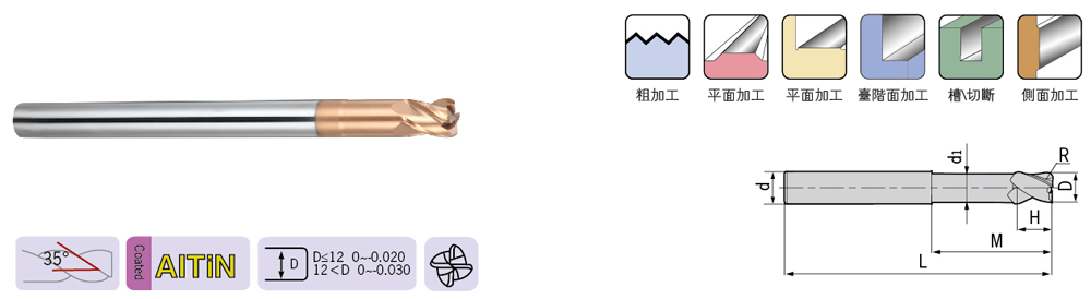 | DH-4-RP / Corner Radius / Long Neck / Short Flute / 4 Flutes DH-4-RPËÄÈÐÖ±±úéLîi¶ÌÈЈA»¡Á¢ãе¶ |