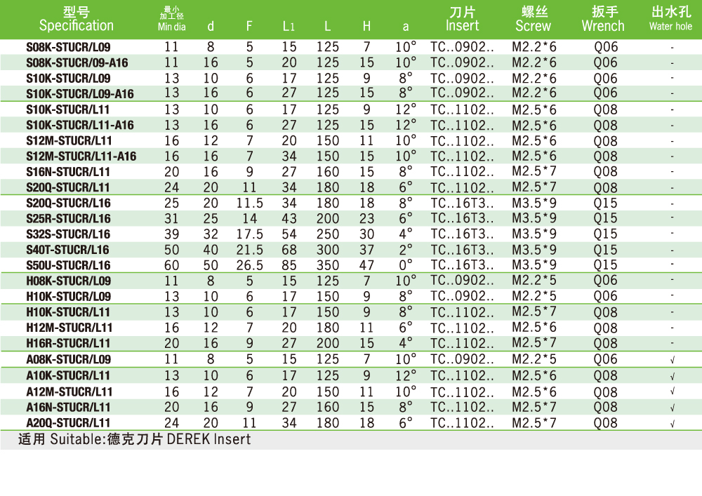 · 鏜刀片 · 銑刀片 · 普通車刀片 · 切槽車刀片 · 螺紋車刀片 |