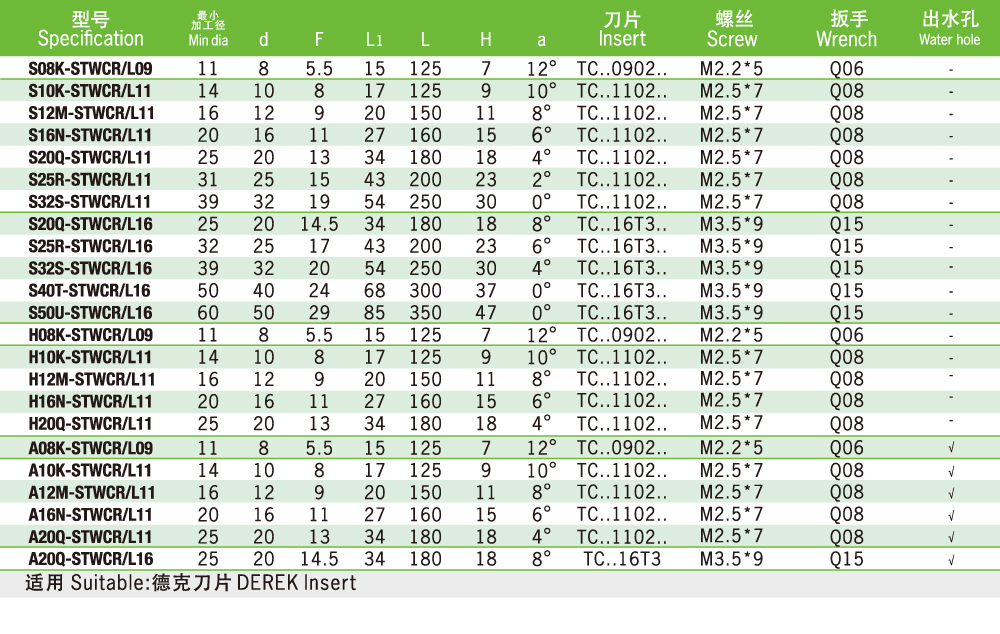 · 鏜刀片 · 銑刀片 · 普通車刀片 · 切槽車刀片 · 螺紋車刀片 |