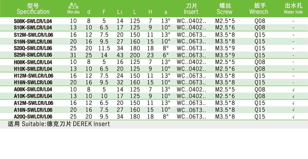 · 鏜刀片 · 銑刀片 · 普通車刀片 · 切槽車刀片 · 螺紋車刀片 |