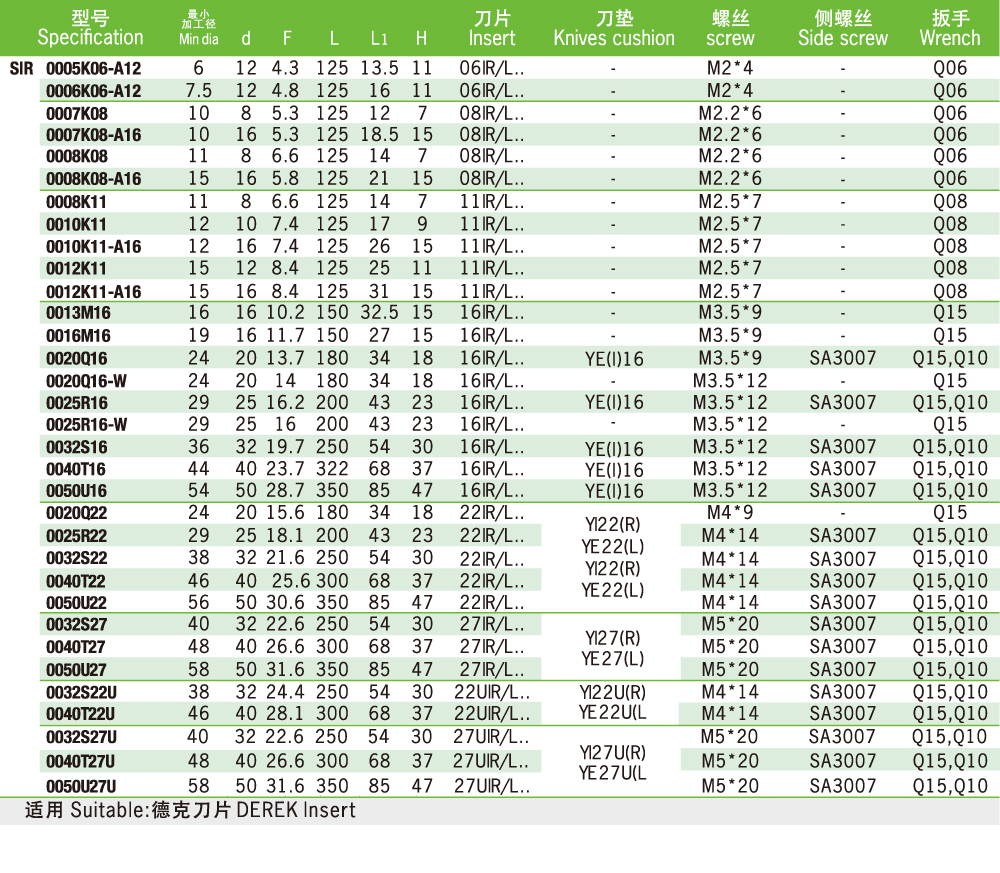 · 鏜刀片 · 銑刀片 · 普通車刀片 · 切槽車刀片 · 螺紋車刀片 |