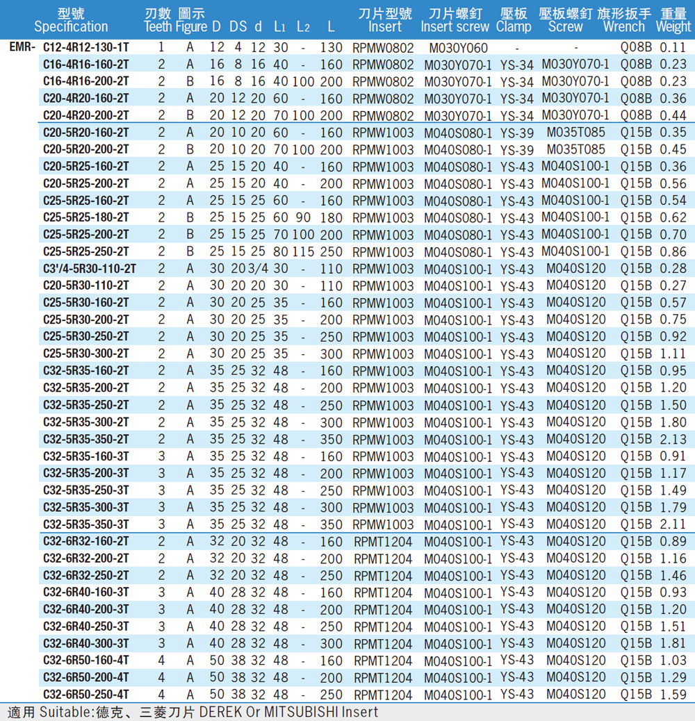 | EMR Screw-on Milling Cutter EMR鎖牙式端銑刀頭 |