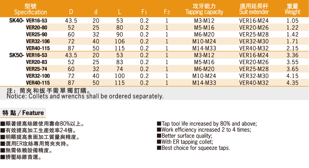 | SK-VER Tapping Chuck SK-VER快換式微補償攻牙刀柄 |