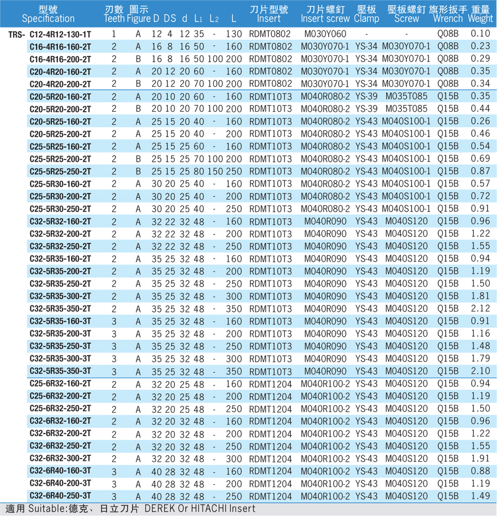 | TRS Screw-on Milling Cutter TRS鎖牙式端銑刀頭 |